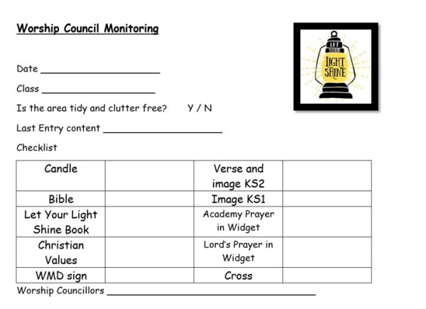 The worship council do a weekly monitoring check on the each classrooms "let your light shine areas".