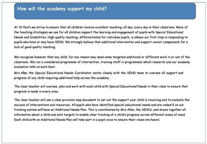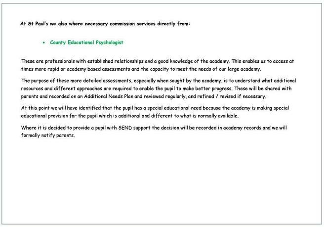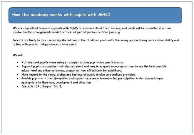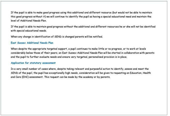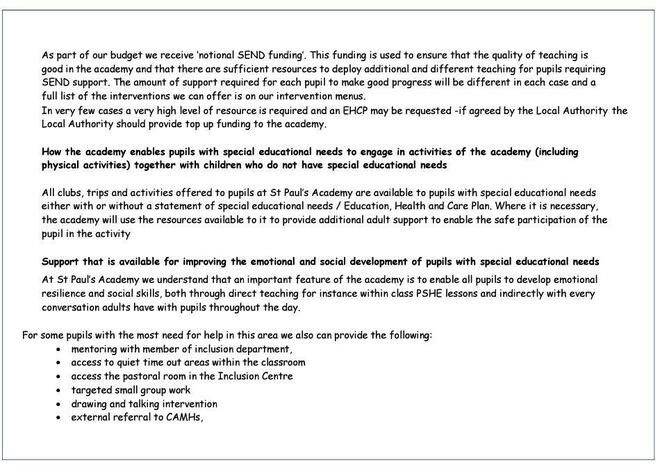 Please read our SEND offer and Policy for further information.