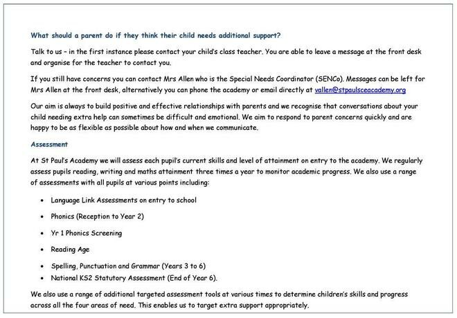 Should you have any concerns about your child please speak to the Class Teacher in the first instance and should you need to discuss any further SEND concerns please do not hesitate to contact me.