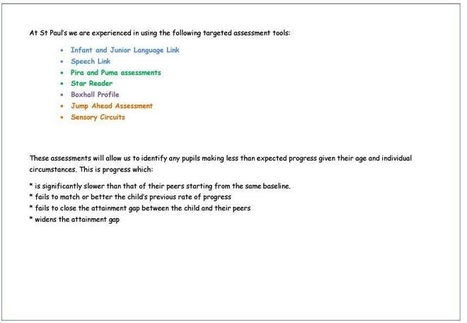We work closely with teachers and support staff with the aim of identifying children’s SEND (Special Educational & Disability Needs) as early as possible, so that the child achieves the best possible outcomes.